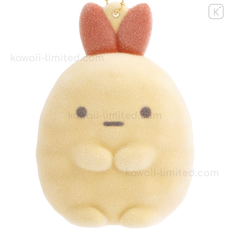 Japan San-X Flocked Keychain - Sumikko Gurashi : Raccoon Tanuki Round Restaurant Ebifurai no Shippo Fried Shrimp Tail