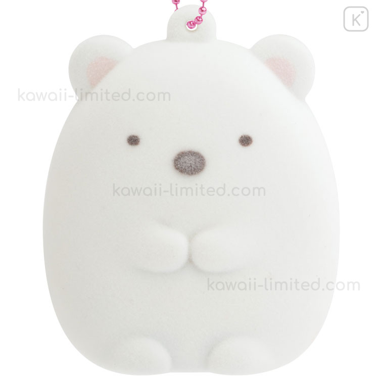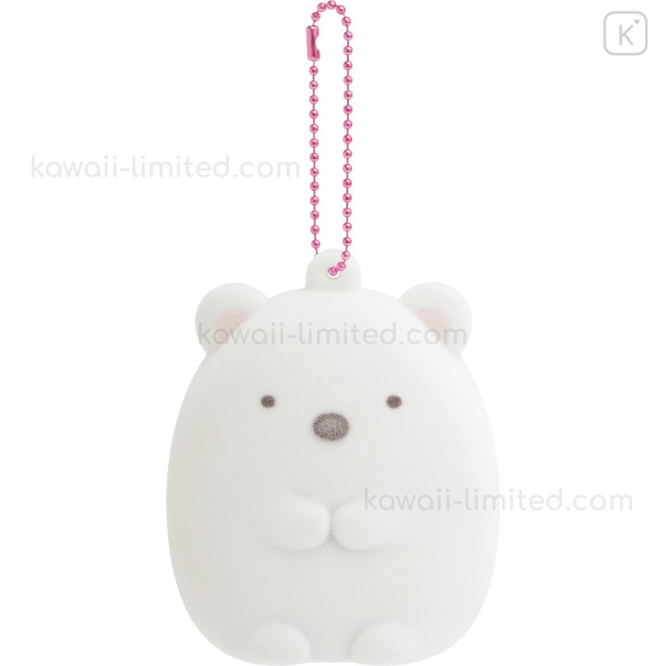 Japan San-X Flocked Keychain - Sumikko Gurashi : Raccoon Tanuki Round Restaurant Shirokuma