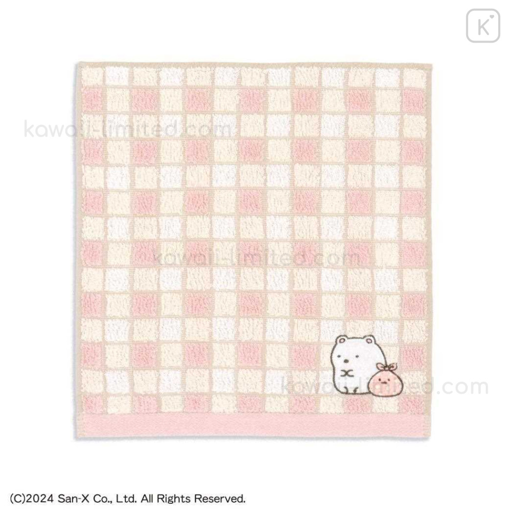 Japan San-X Gauze Towel Handkerchief - Sumikko Gurashi : Shirokuma & Furoshiki Grid Pink