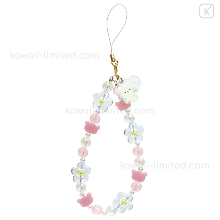 Japan San-X Hand Strap Phone Charm - Korilakkuma : Basic Rilakkuma Flower Sparkling Bead