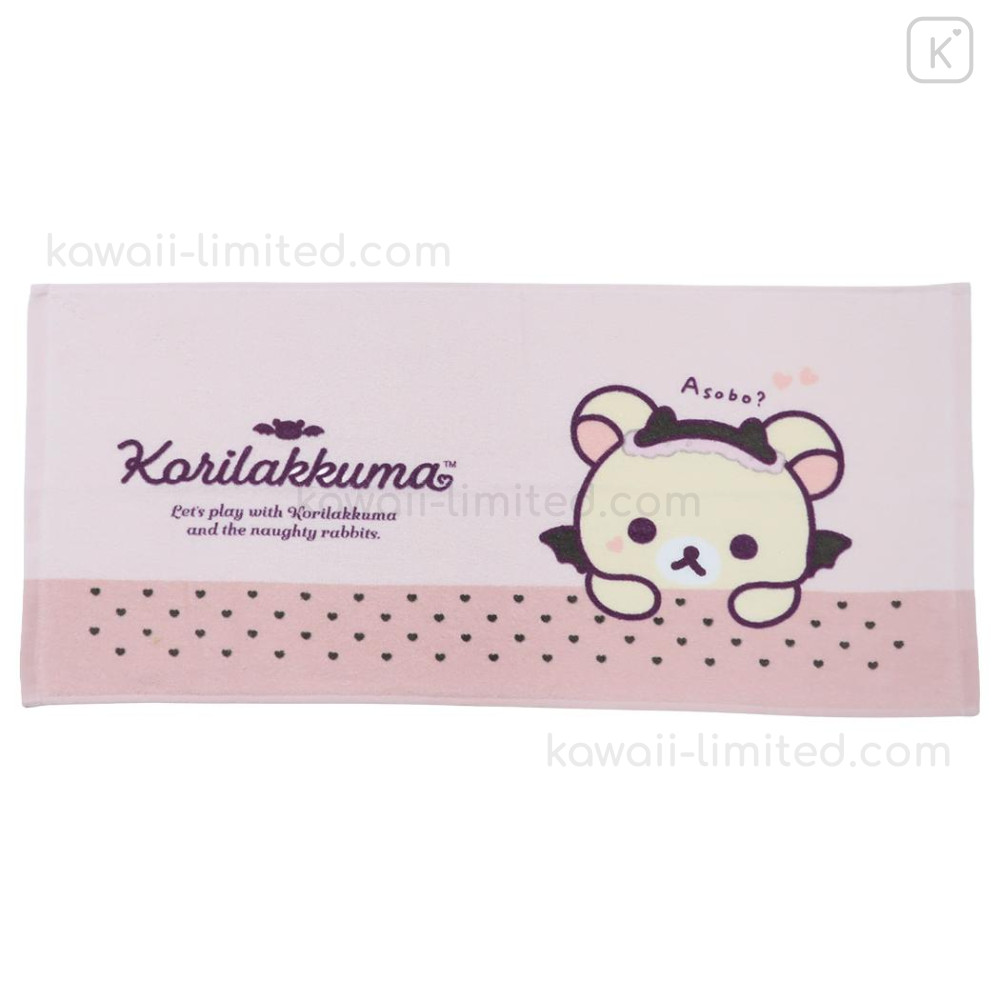 Japan San-X Jacquard Face Towel - Korilakkuma : Korilakkuma's Little Devil Feeling Pink
