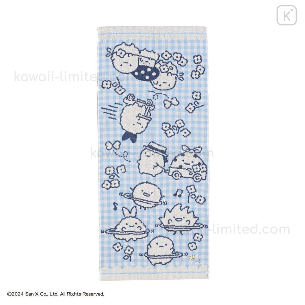 Japan San-X Jacquard Face Towel - Sumikko Gurashi : Playground Gingham Blue