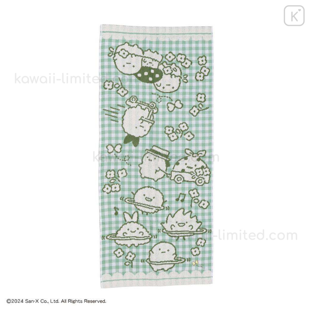 Japan San-X Jacquard Face Towel - Sumikko Gurashi : Playground Gingham Green