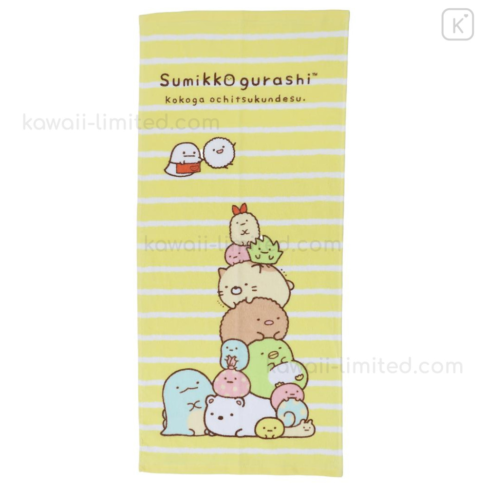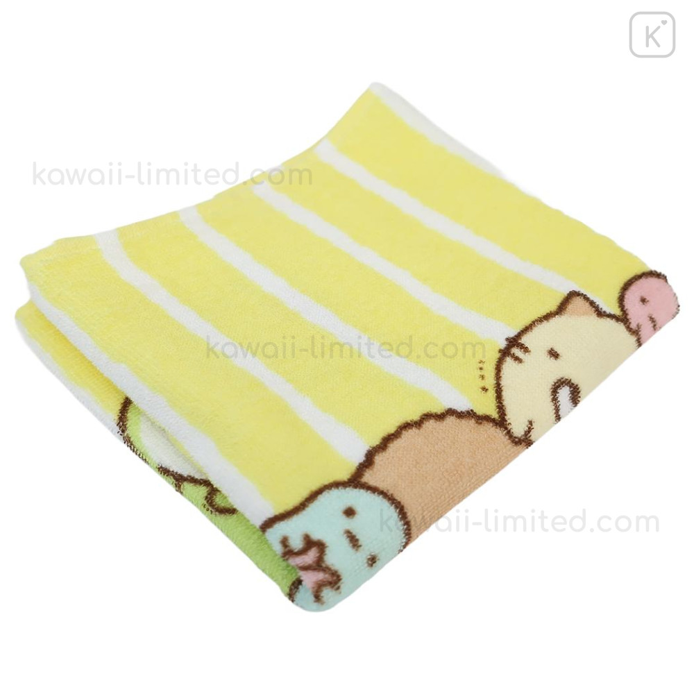 Japan San-X Jacquard Face Towel - Sumikko Gurashi : Yellow Stripe