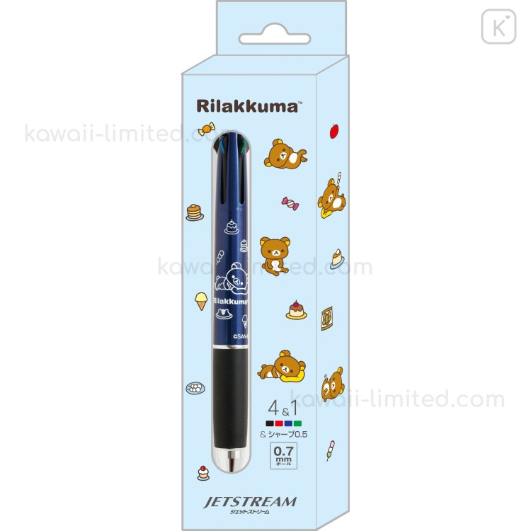 Japan San-X Jetstream 4&1 Multi Ballpoint Pen + Mechanical Pencil - Rilakkuma : Relax Metallic Navy White