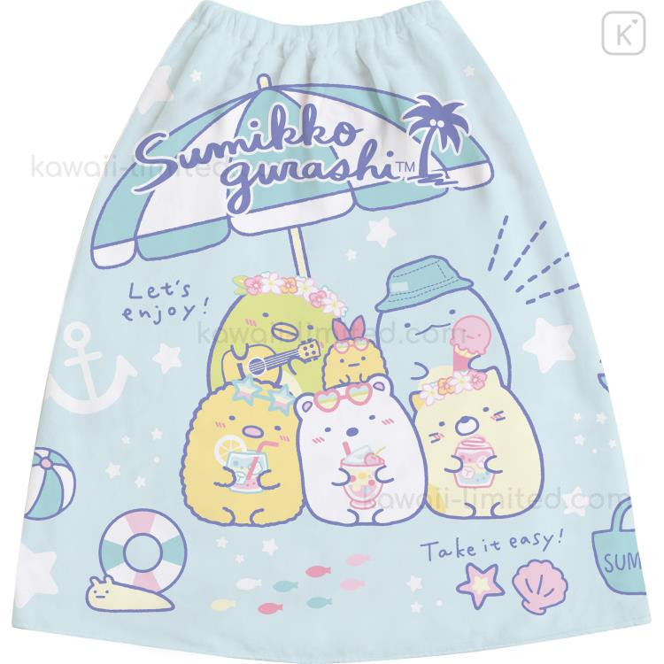 Japan San-X Kids Wrap Towel 60cm - Sumikko Gurashi : Beach Party Blue