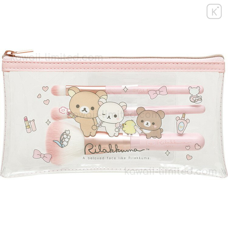Japan San-X Makeup Brush Set with Clear Pouch - Makeup Rilakkuma
