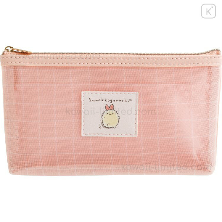 Japan San-X Mesh Pen Pouch - Sumikko Gurashi : Ebifurai no Shippo Fried Shrimp Tail Pink