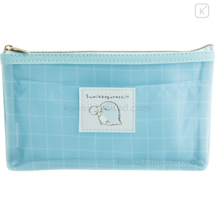 Japan San-X Mesh Pen Pouch - Sumikko Gurashi : Tokage & Nisetsumuri Blue