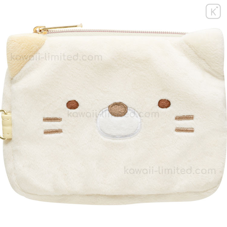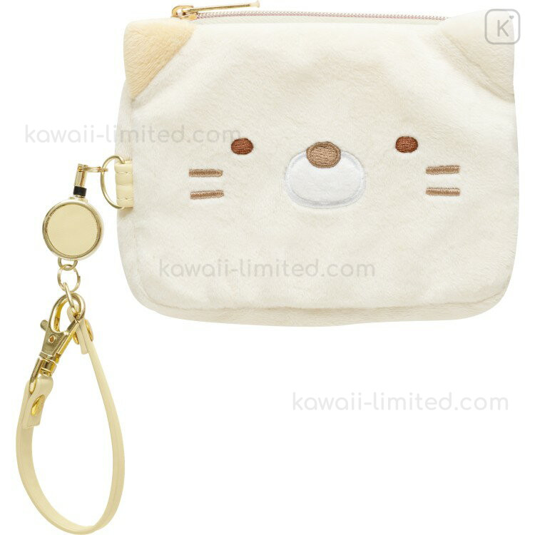 Japan San-X Mini Pouch & Pass Case Card Holder with Reel - Sumikko Gurashi : Neko Face
