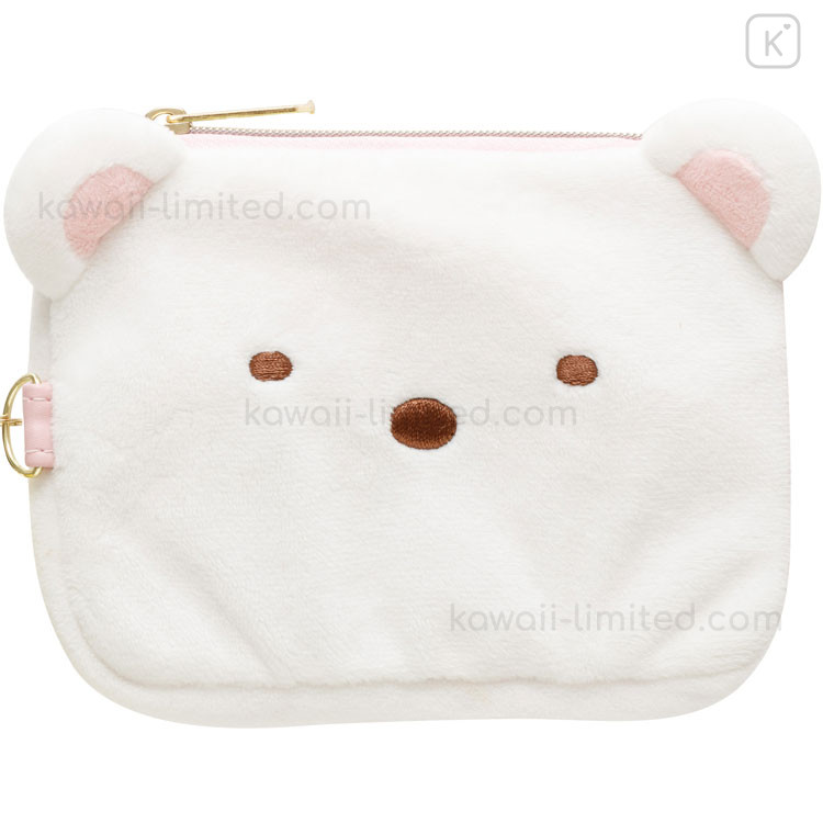 Japan San-X Mini Pouch & Pass Case Card Holder with Reel - Sumikko Gurashi : Shirokuma Face