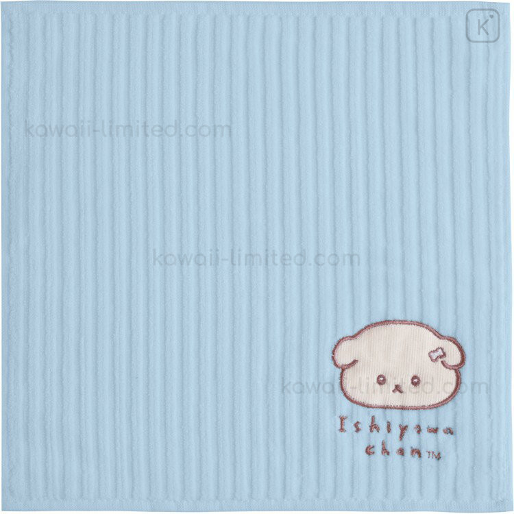 Japan San-X Mini Towel Handkerchief - Ishiyowa-chan : Introducing Kouhai-chan Embroidered Blue