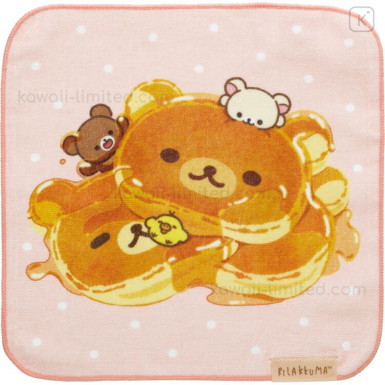 Japan San-X Mini Towel Handkerchief - Rilakkuma Stay with Me Pancake Pink