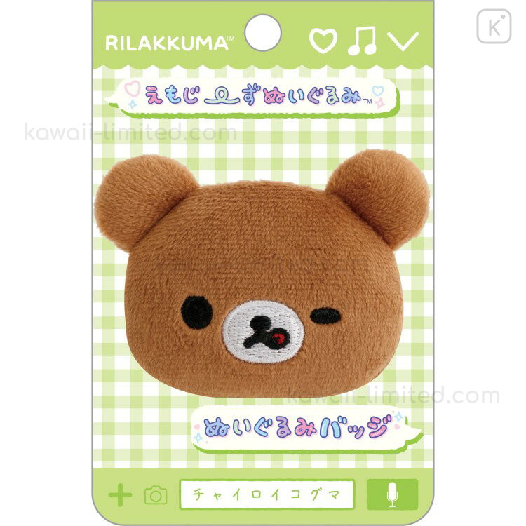 Japan San-X Plush Badge - Chairoikoguma : Emoji Face Wink Lick