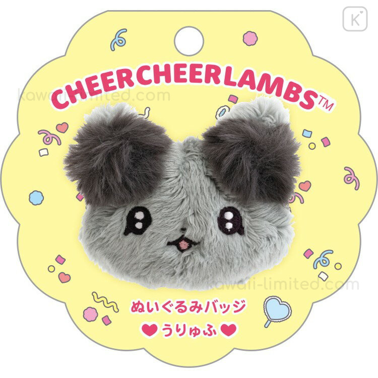Japan San-X Plush Badge - Cheer Cheer Lambs : Let's Go! Shake! Cheer Up! Uryufu Face Grey