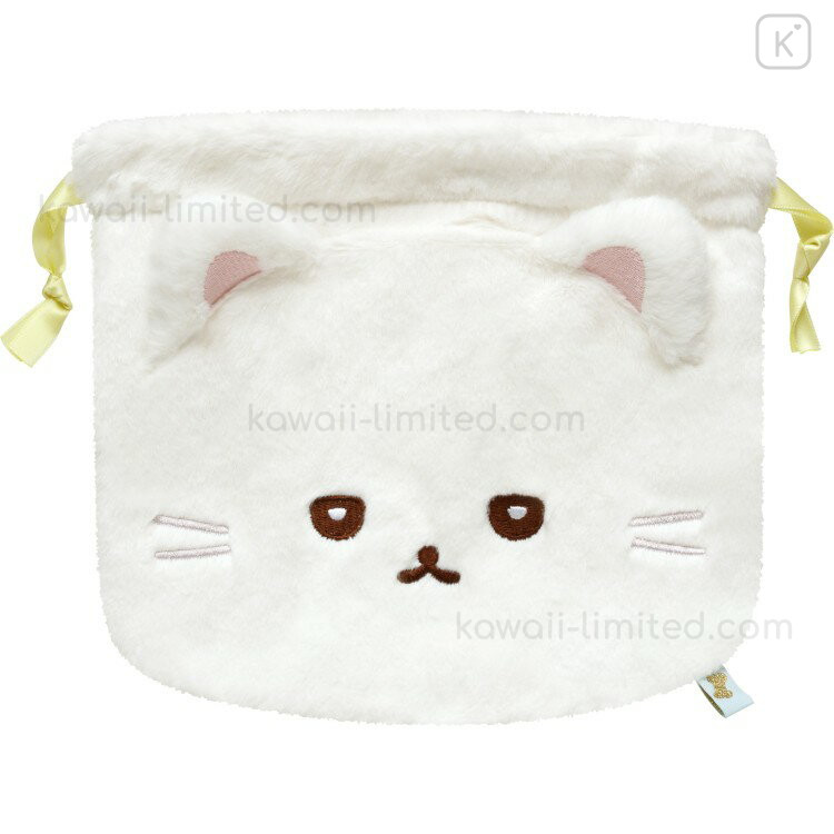 Japan San-X Plush Drawstring Bag - Ishiyowa-chan : Introducing Kouhai-chan White Cat