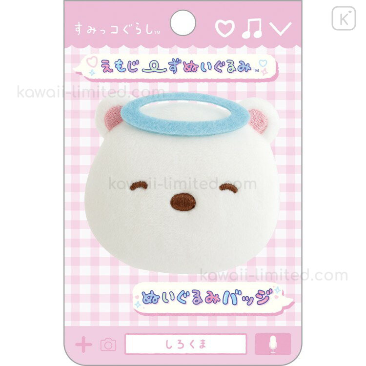 Japan San-X Store Plush Badge - Sumikko Gurashi : Shirokuma Angel Smiling