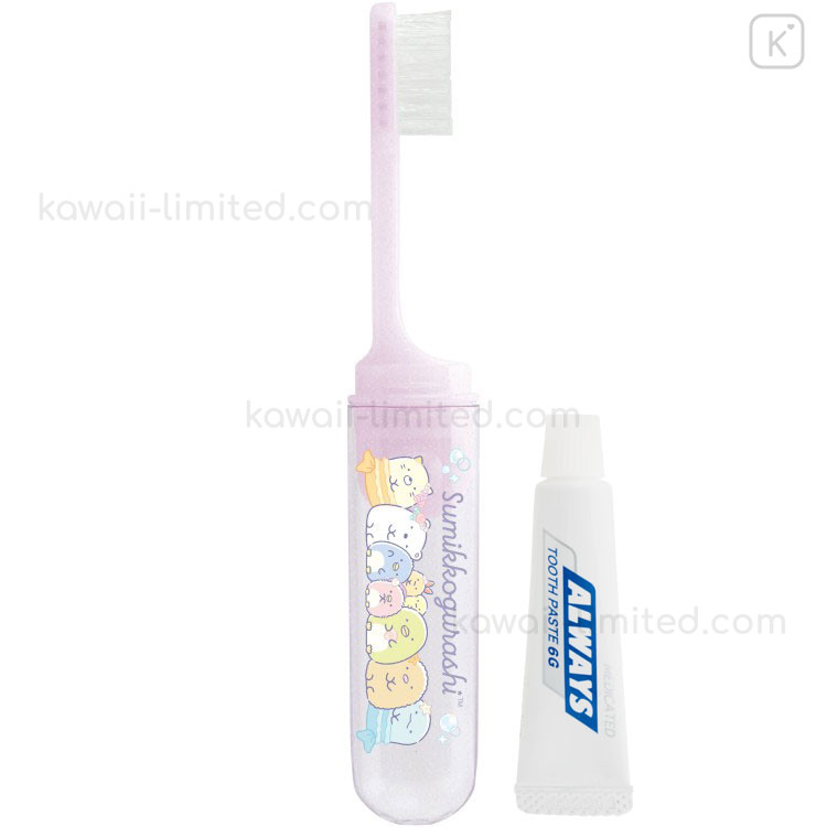 Japan San-X Toothbrush Set - Sumikko Gurashi : Penguin Lagoon Purple Milk bottle