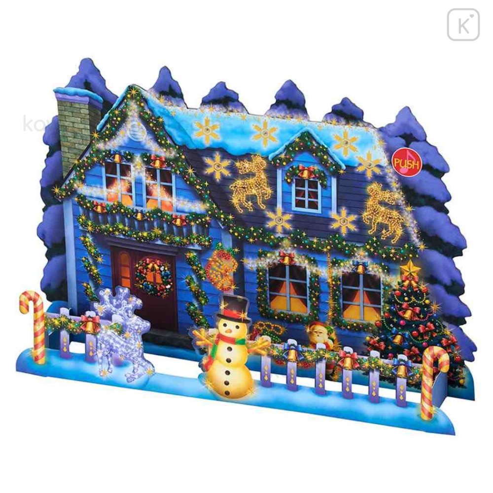 Japan Sanrio 3D Greeting Card - Christmas Illumination House Snowman & Music