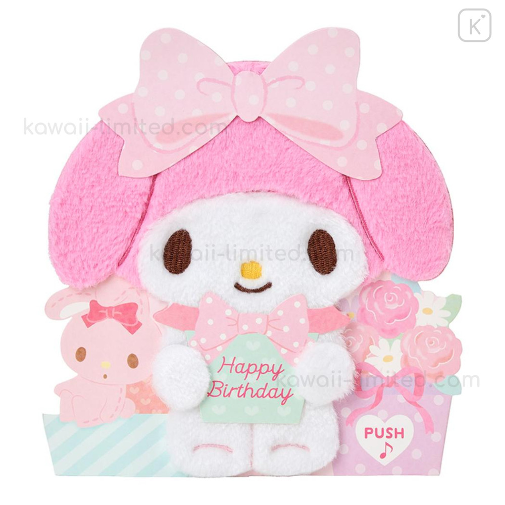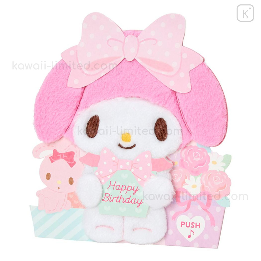 When you press the button, My Melody sings "HAPPY BIRTHDAY TO YOU" and offers birthday wishes.