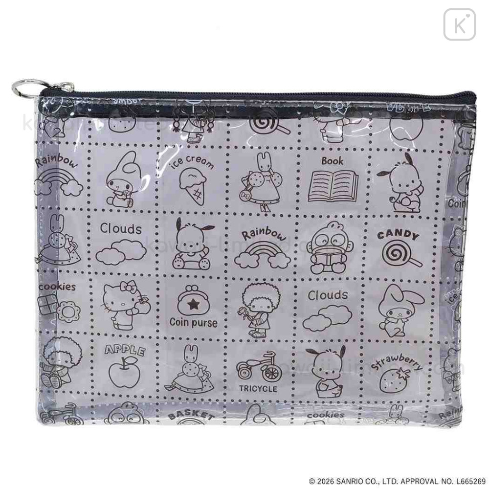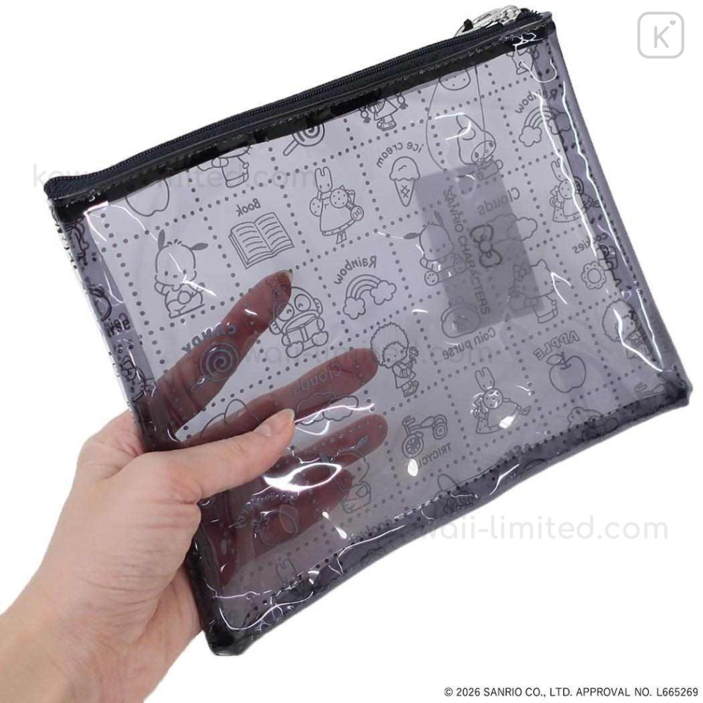 Japan Sanrio A5 Flat Pouch - Characters Black All Over Pattern