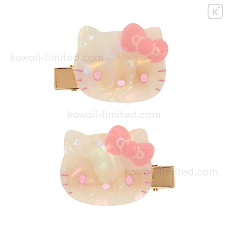Japan Sanrio Acrylic Hair Clip Set - Hello Kitty : Baby Pink Shell Holographic