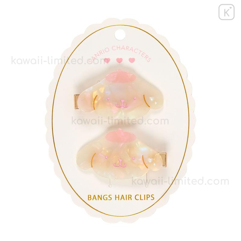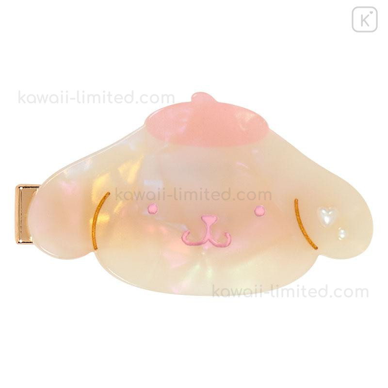 Japan Sanrio Acrylic Hair Clip Set - Pompompurin : Baby Pink Shell Holographic