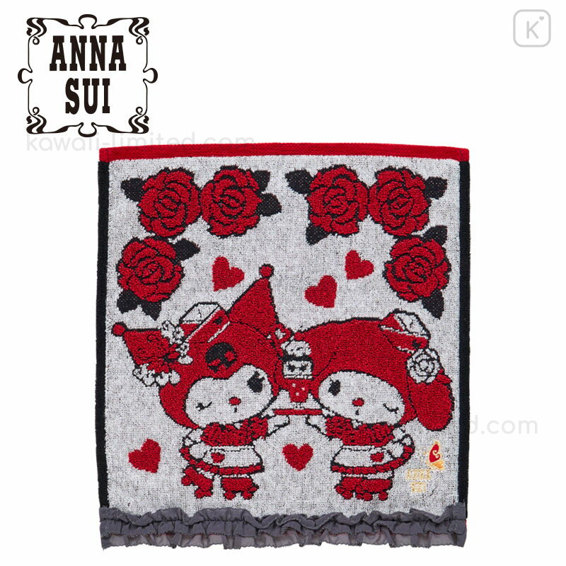 Japan Sanrio × Anna Sui Mini Towel Jacquard Handkerchief - My Melody 50th & Kuromi 20th Anniversary Ruffle Red