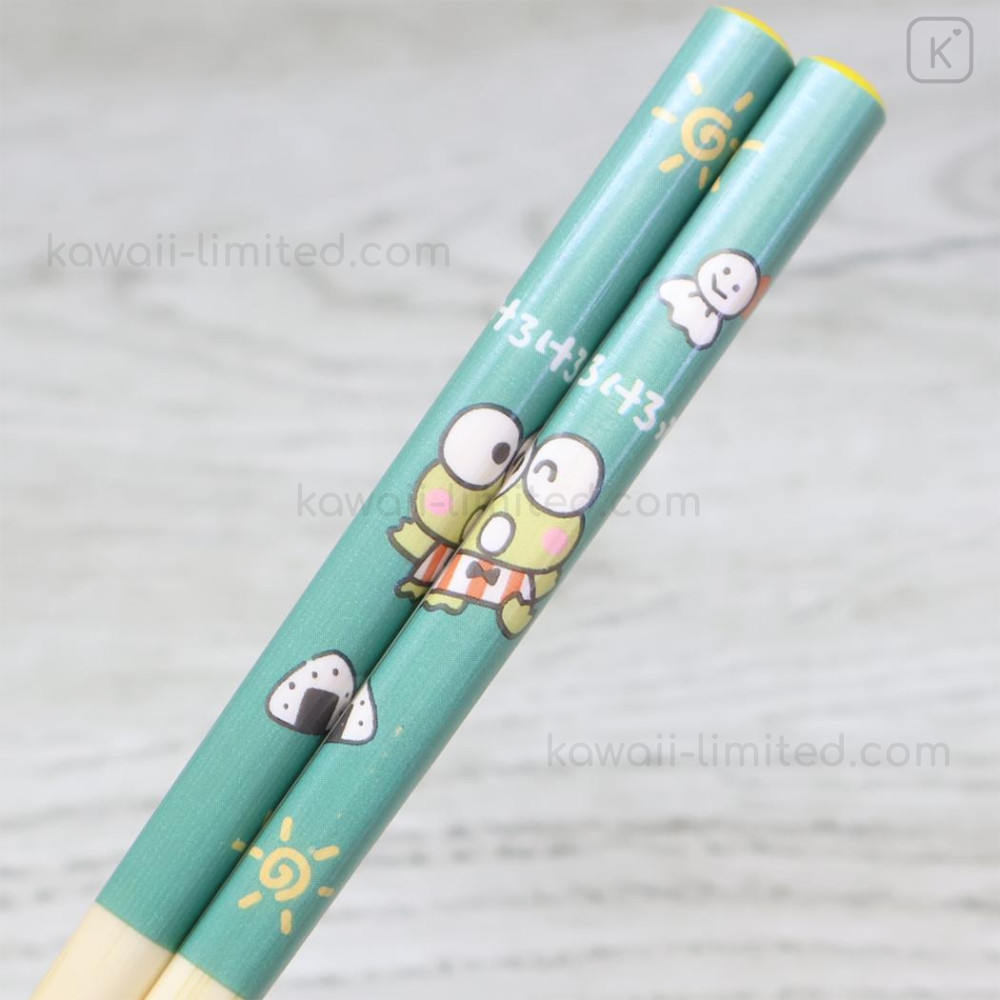 Japan Sanrio Bamboo Chopsticks 21cm with Bag - Keroppi