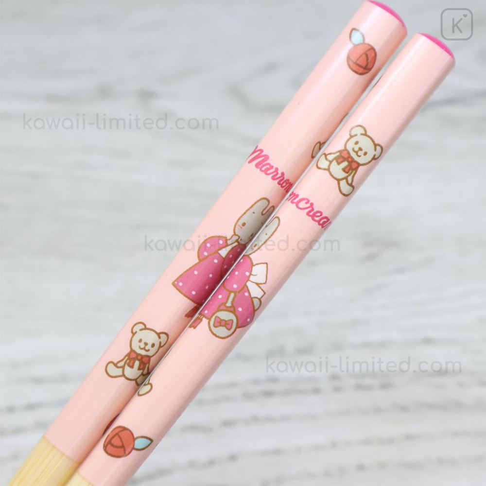 Japan Sanrio Bamboo Chopsticks 21cm with Bag - Marron Cream