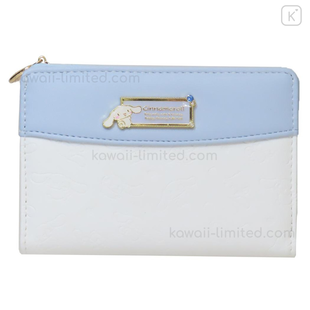Japan Sanrio Bifold Wallet - Cinnamoroll : Blue Gold Embossed