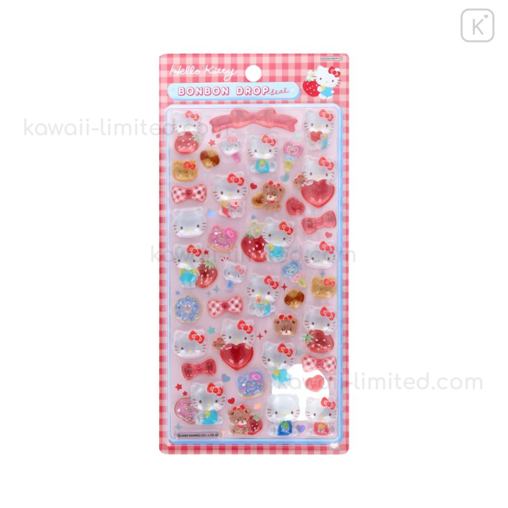 Japan Sanrio Bonbon Drop Seal 3D Sticker - Hello Kitty & Tiny Chum : Gingham
