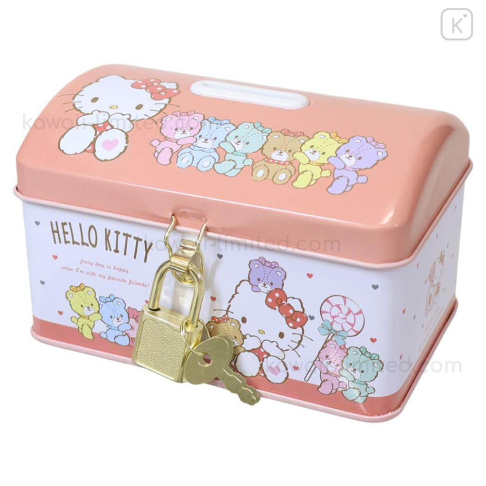 Japan Sanrio Can Piggy Bank with Lock Case - Hello Kitty & Tiny Chum
