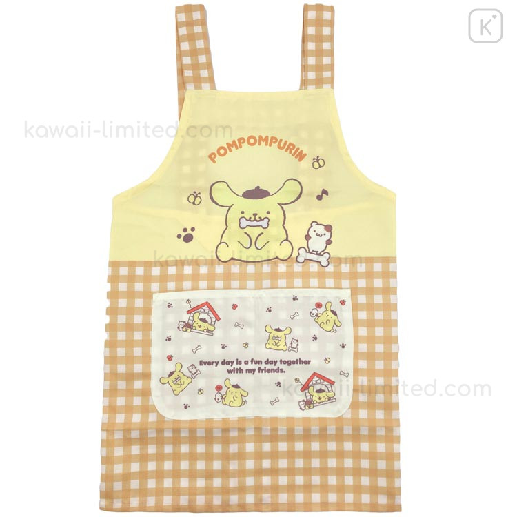Japan Sanrio Children's Apron - Pompompurin : Gingham Fun With Friends H130cm