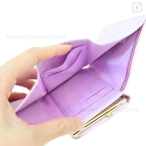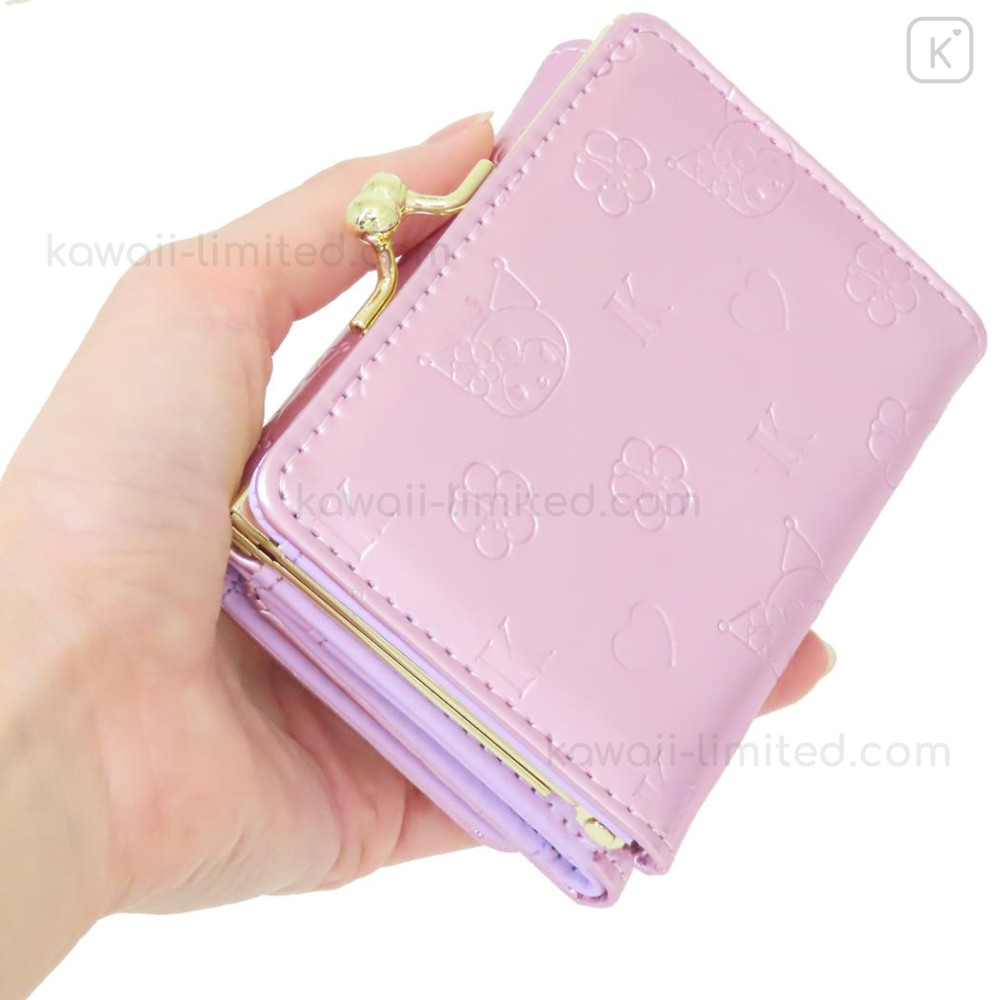 Japan Sanrio Clasp Trifold Wallet - Kuromi : Patent Leather Fuchsia Pink Purple