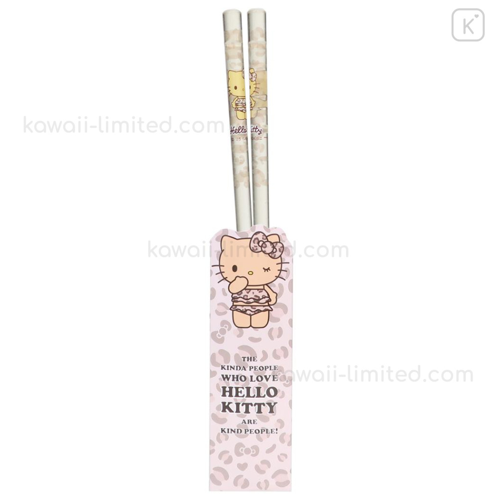 Japan Sanrio Clear Chopsticks 23cm - Hello Kitty : Tan Swimsuit Party Leopard