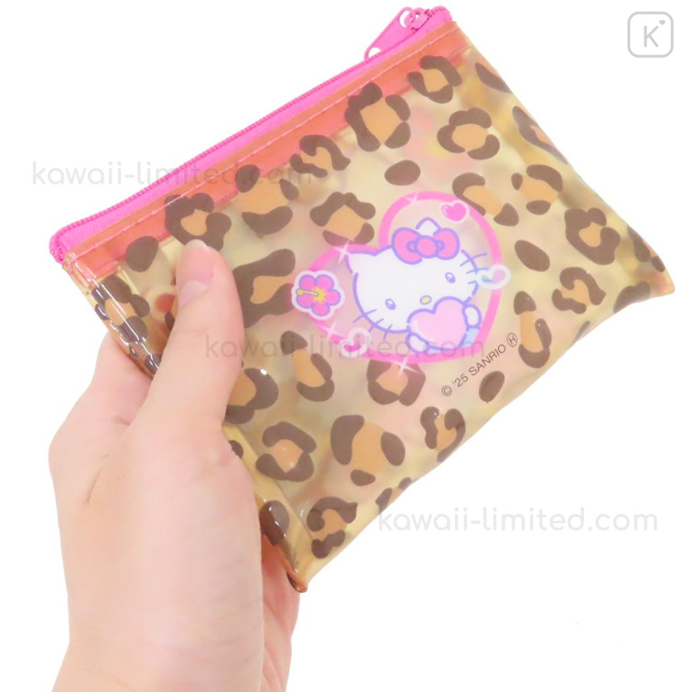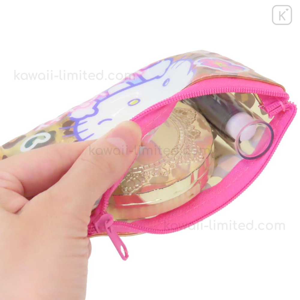 Japan Sanrio Clear Flat Mini Pouch - Hello Kitty : Heart-pounding Memories Heisei Retro