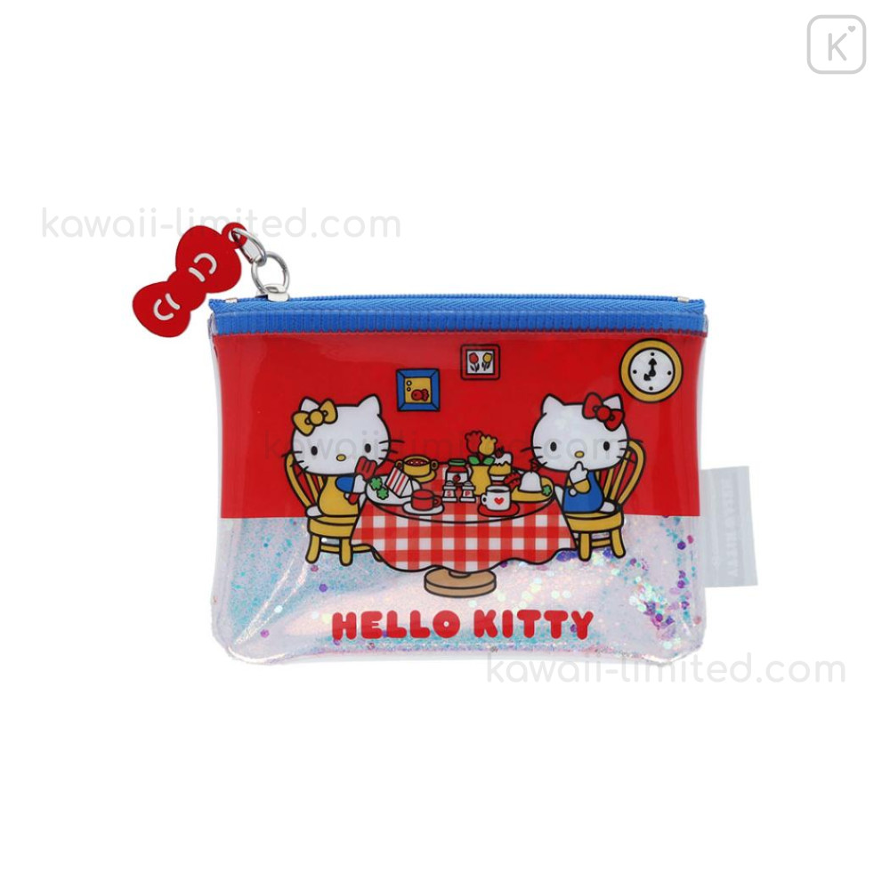 Japan Sanrio Clear Flat Mini Pouch - Hello Kitty & Hello Mimmy : Glitter Afternoon Tea