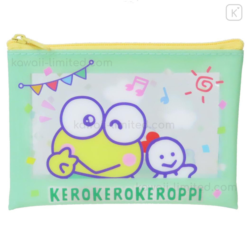 Japan Sanrio Clear Flat Mini Pouch - Keroppi : Heart-pounding Memories Heisei Retro