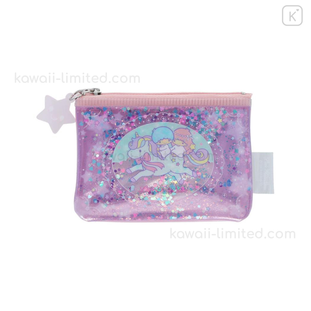 Japan Sanrio Clear Flat Mini Pouch - Little Twin Stars : Glitter Unicorn Pink