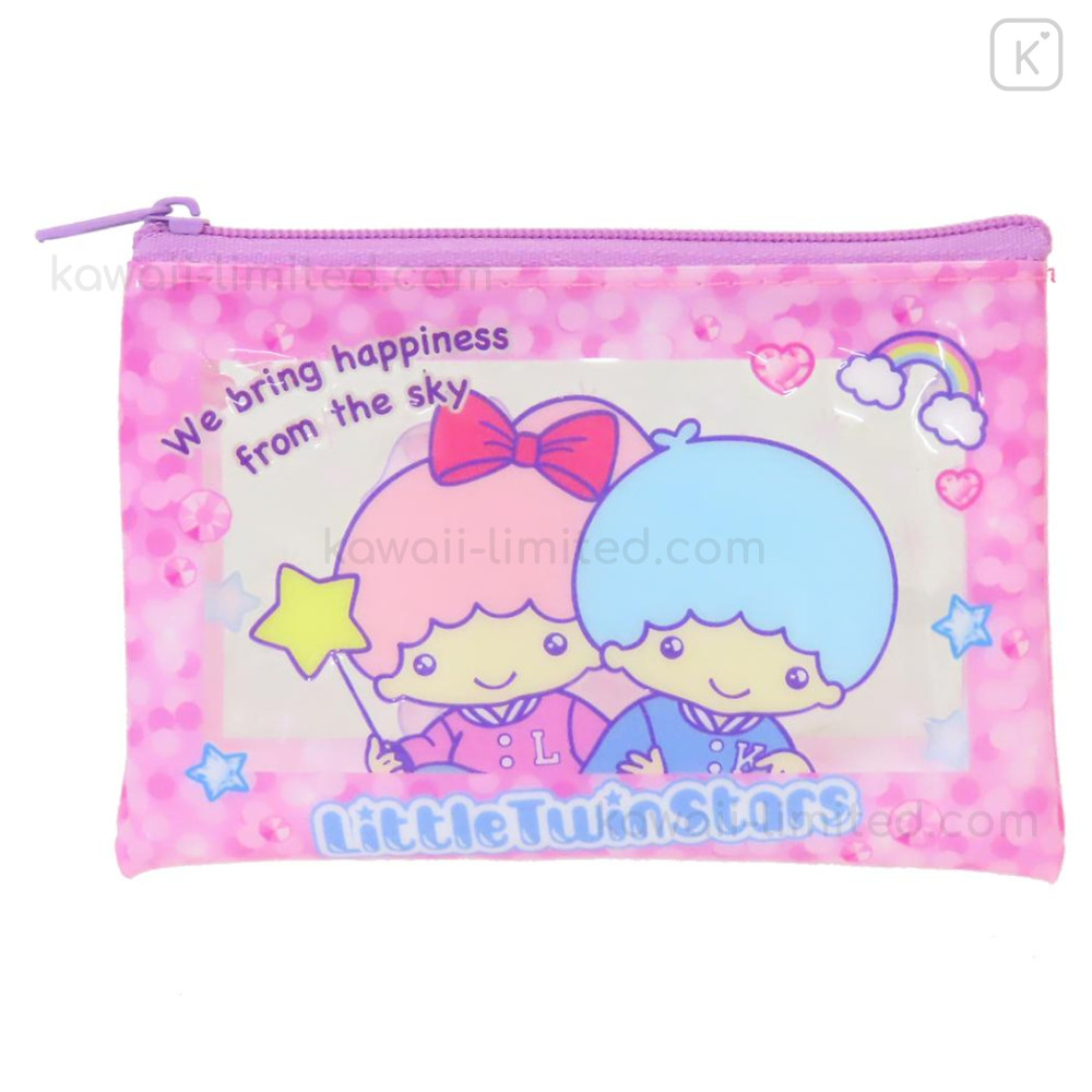 Japan Sanrio Clear Flat Mini Pouch - Little Twin Stars : Heart-pounding Memories Heisei Retro