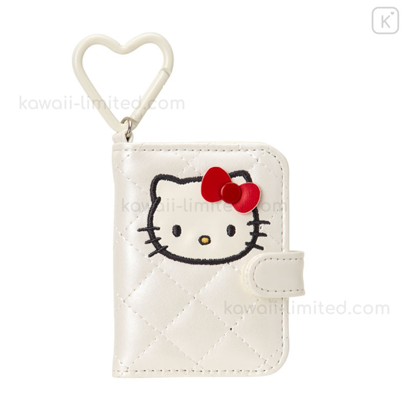 Japan Sanrio Double-sided Compact Mirror with Carabiner - Hello Kitty : Miniature Quilt Notebook Style White