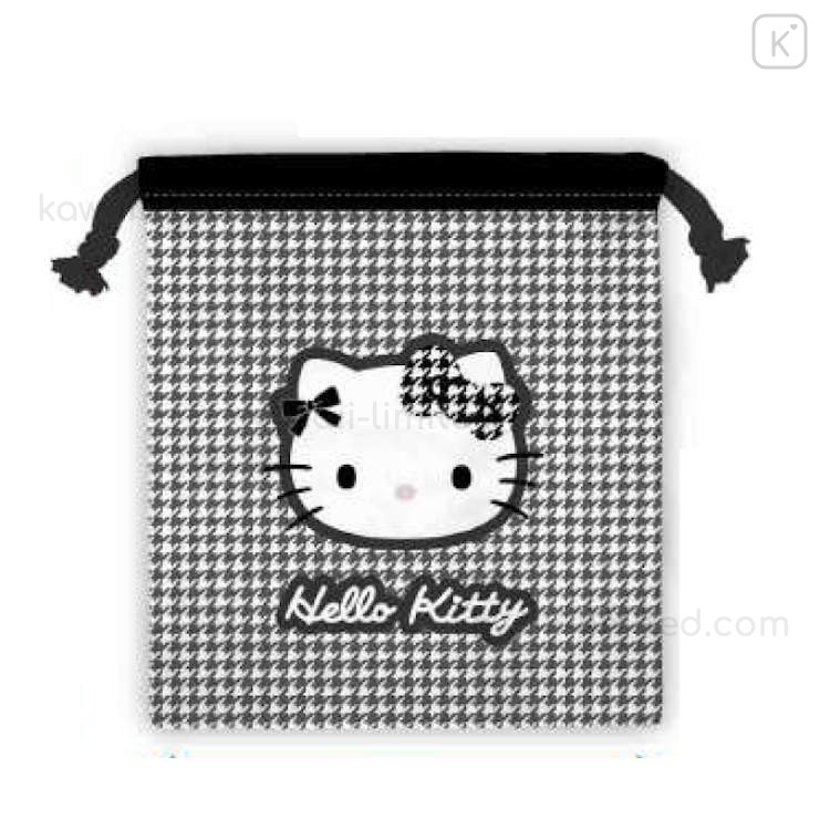 Japan Sanrio Drawstring Bag - Hello Kitty : Houndstooth Black