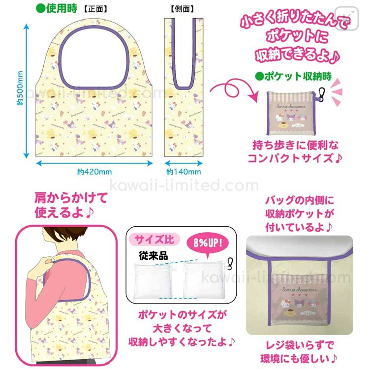 Japan Sanrio Eco Shopping Bag With Pocket - Characters Toddler Light Yellow