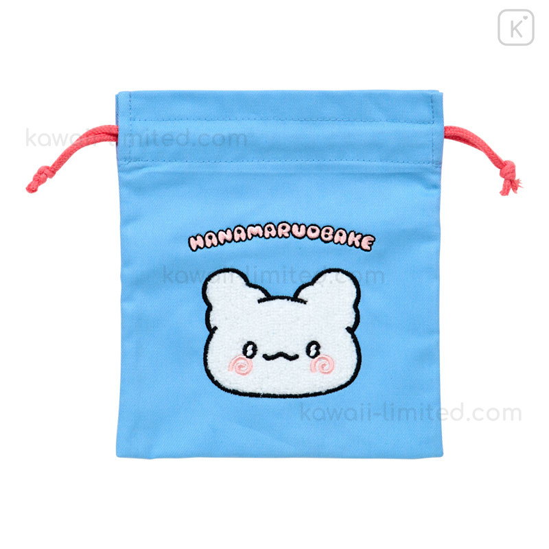 Japan Sanrio Embroidered Drawstring Bag - Hanamaruobake : Pastel Sweets Pop Blue