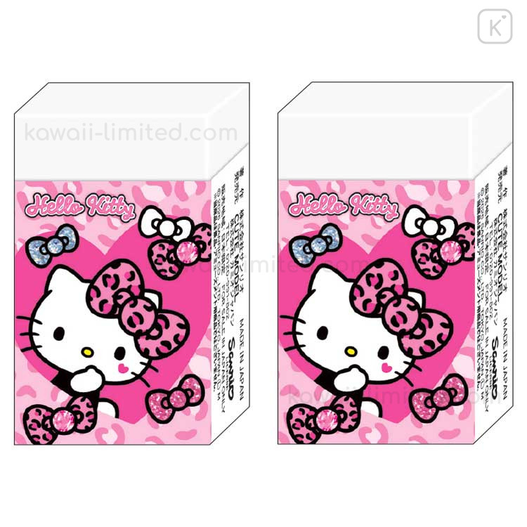 Japan Sanrio Eraser Set - Hello Kitty : Gal Art Big Ribbon Leopard