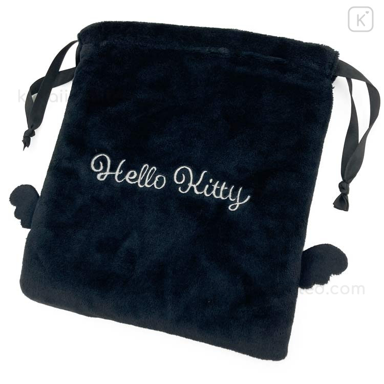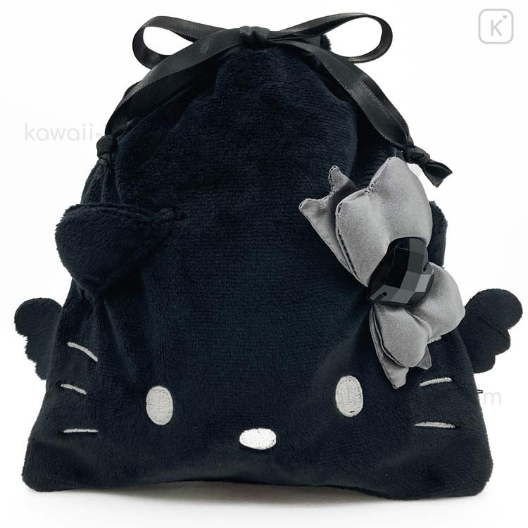 Japan Sanrio Face Drawstring Bag - Hello Kitty : Black Angel Black