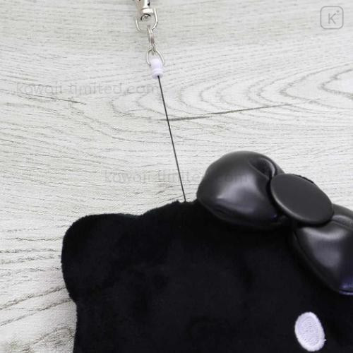 Japan Sanrio Face Pass Case Coin Case with Reel - Hello Kitty : Monochrome