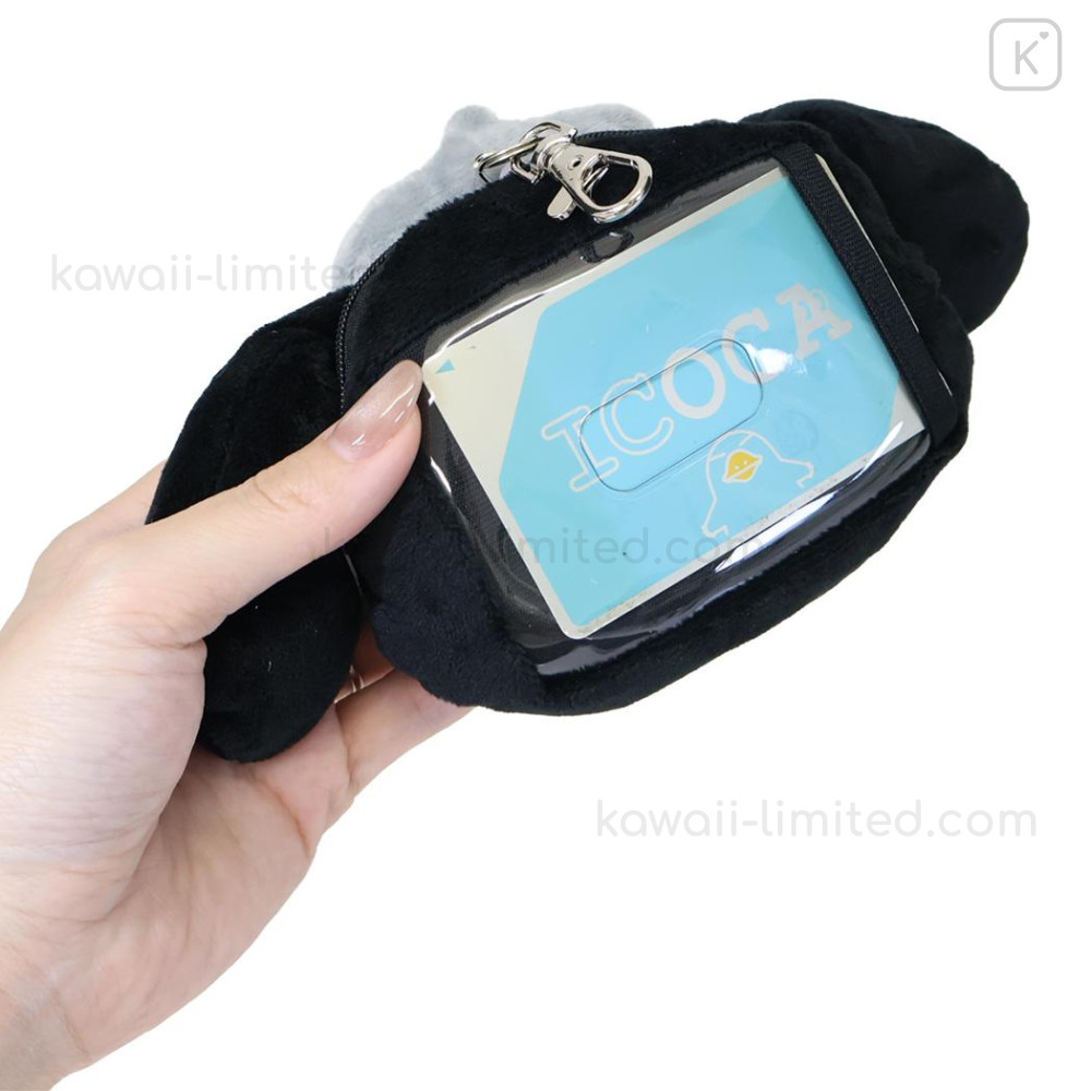 Japan Sanrio Face Pass Case Coin Case with Reel - Pompompurin : Monochrome