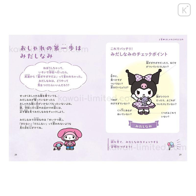 - This book teaches you about compassion, grooming, manners, fashion, and how to take care of your heart, along with My Melody and Kuromi. Love yourself more and live a happy life.